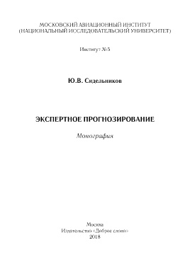 московскийо о ИНСТИТУТ АВИАЦИОННЫМ (НАЦИОНАЛЬНЫЙ ИССЛЕДОВАТЕЛЬСКИЙ УНИВЕРСИТЕТ) Институт №5 Ю.В. Сидельников ЭКСПЕРТНОЕ ПРОГНОЗИРОВАНИЕ Монография Москва Издательство «Доброе слово» 2018