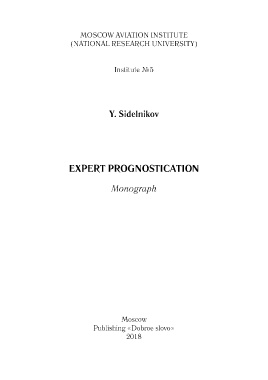 MOSCOW AVIATION INSTITUTE (NATIONAL RESEARCH UNIVERSITY) Institute №5 Y. Sidelnikov EXPERT PROGNOSTICATION Monograph Moscow Publishing «Dobroe slovo» 2018
