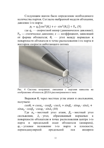 поверхности обтекателя в точке расположения i-го порта и