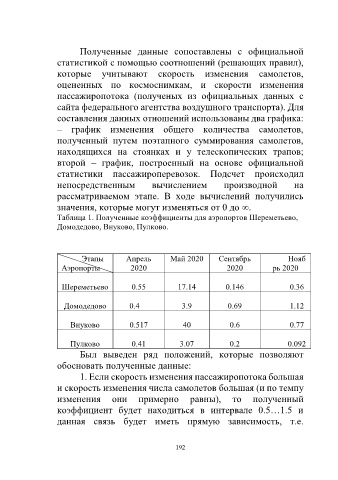 Таблица 1. Полученные коэффициенты для аэропортов Шереметьево,