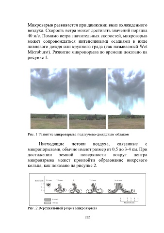 Рис. 1 Развитие микровзрыва под кучево-дождевым облаком