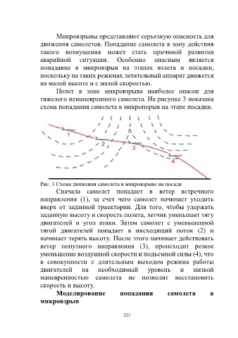 Рис. 3 Схема движения самолета в микровзрыве на посадк