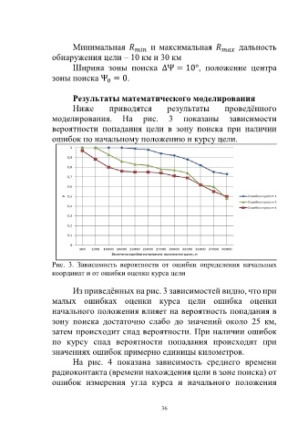 Рис. 3. Зависимость вероятности от ошибки определения начальных