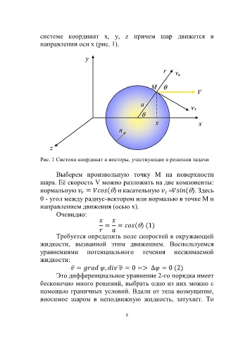 Рис. 1 Система координат и векторы, участвующие в решении задачи