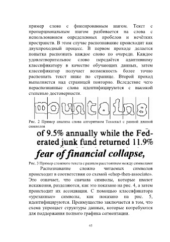 Рис. 2 Пример анализа слова алгоритмом Tesseract с равной длиной