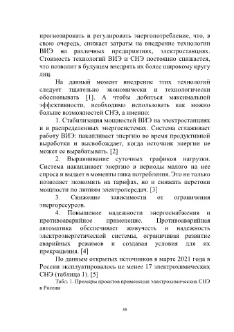 Табл. 1. Примеры проектов применения электрохимических СНЭ