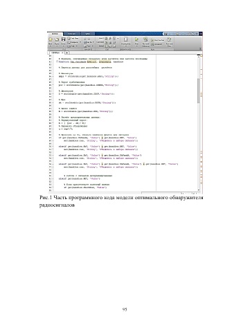 Рис.1 Часть программного кода модели оптимального обнаружителя радиосигналов 95