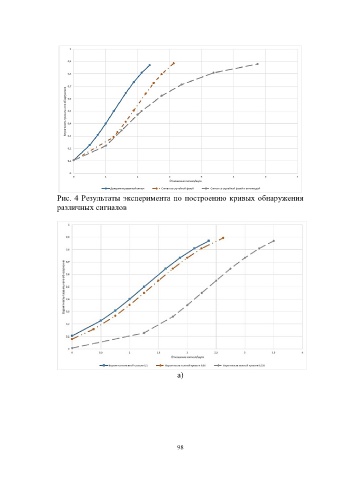 Рис. 4 Результаты эксперимента по построению кривых обнаружения различных сигналов а) 98